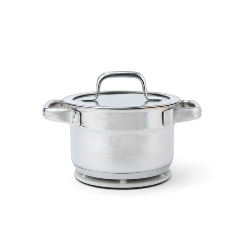 Mit einem Durchmesser von 153 mm und einer Höhe von 12 mm bietet der Untersetzer genug Auflagefläche für kleine bis mittelgroße Töpfe, Pfannen oder Kannen. Trotz seiner schlanken Form bringt er durch das Materialgewicht die nötige Standfestigkeit mit. Die Unterseite ist mit einer schützenden Flockfolie ausgestattet, die empfindliche Oberflächen vor Kratzern bewahrt.
